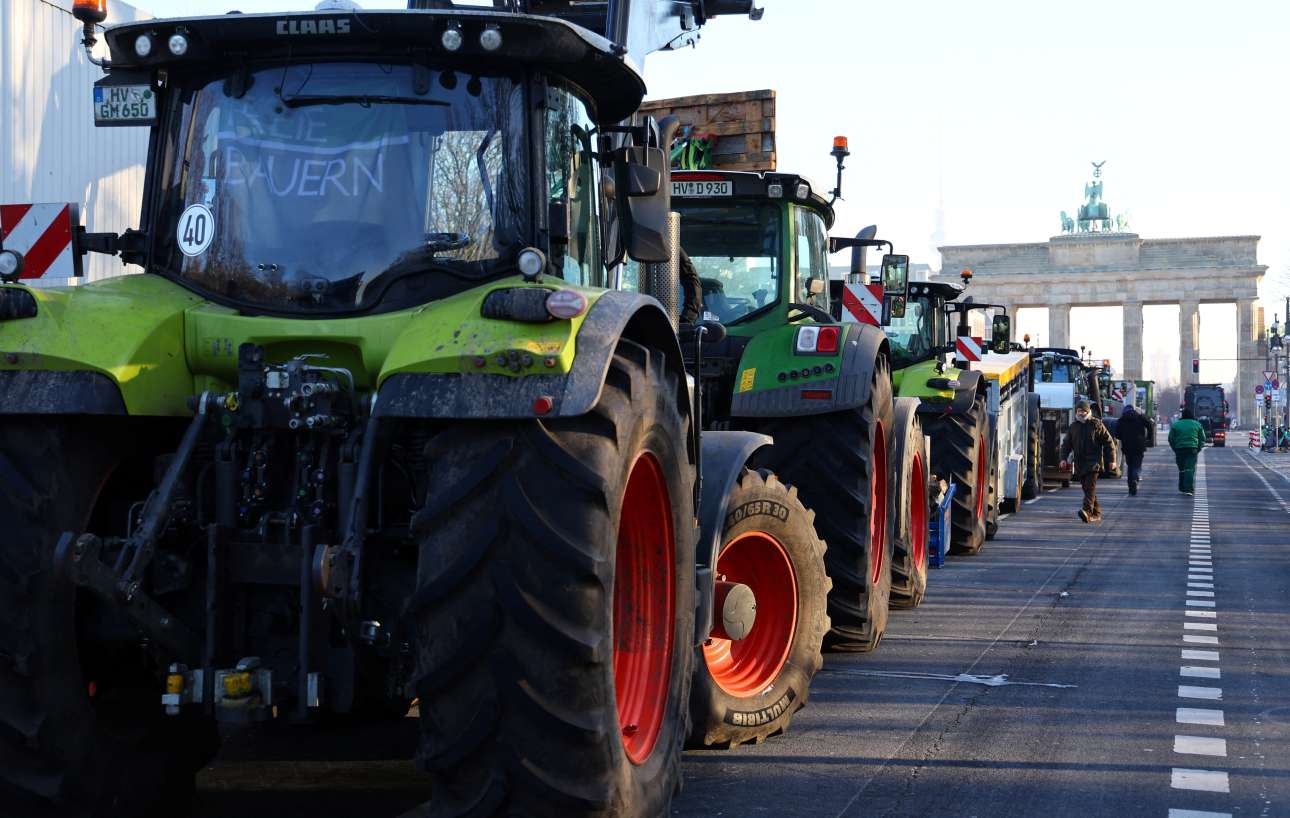 Οι αγρότες διαδηλώνουν με τρακτέρ στους δρόμους του Βερολίνου, ενώ ακροδεξιοί πολιτικοί συναντήθηκαν μυστικά στο Πότσνταμ συζητώντας για απελάσεις μεταναστών, τη στιγμή που ο καγκελάριος Ολαφ Σολτς προσπαθεί να διαλύσει τα πυκνά σύννεφα πάνω από τη γερμανική οικονομία και καλεί σε σεβασμό της Δημοκρατίας.