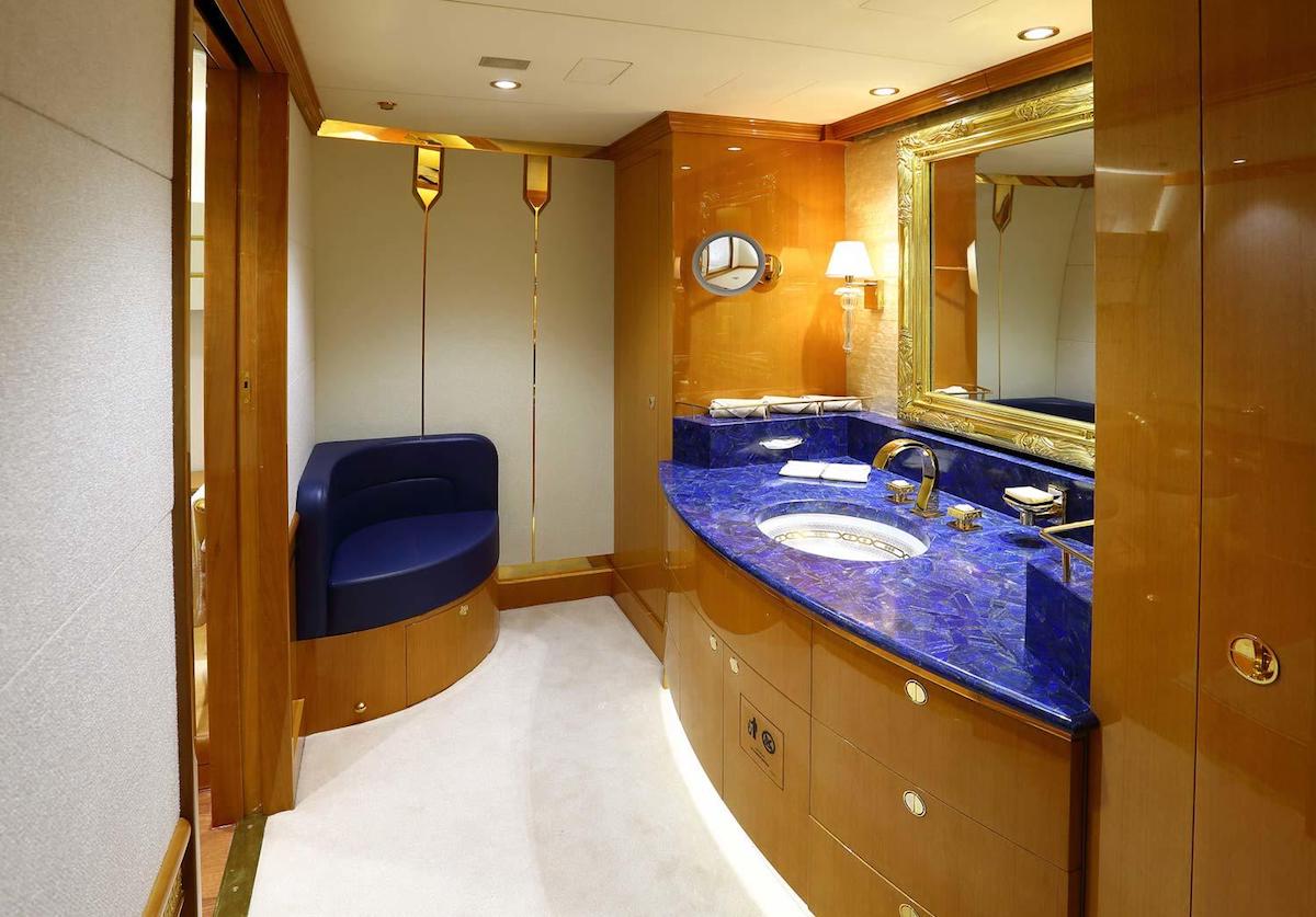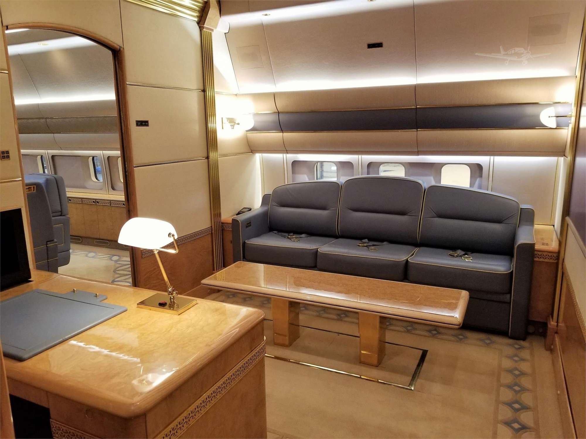 Τα μπάνια στο αεροσκάφος μπορεί να είναι δέκα (!) αλλά προεδρική σουίτα υπάρχει μόνον μία, με διπλό, φυσικά, κρεβάτι, και έπιπλα με τέλειο φινίρισμα.