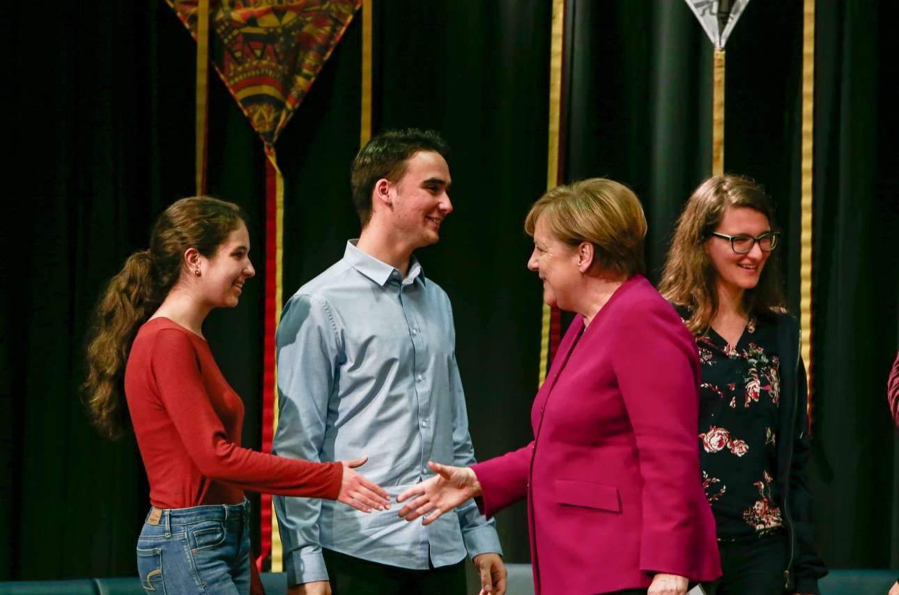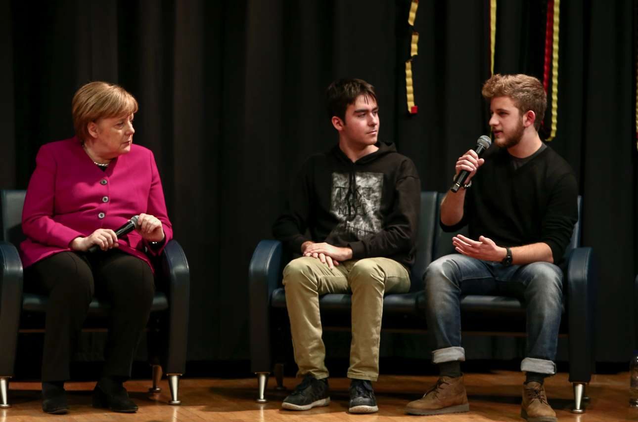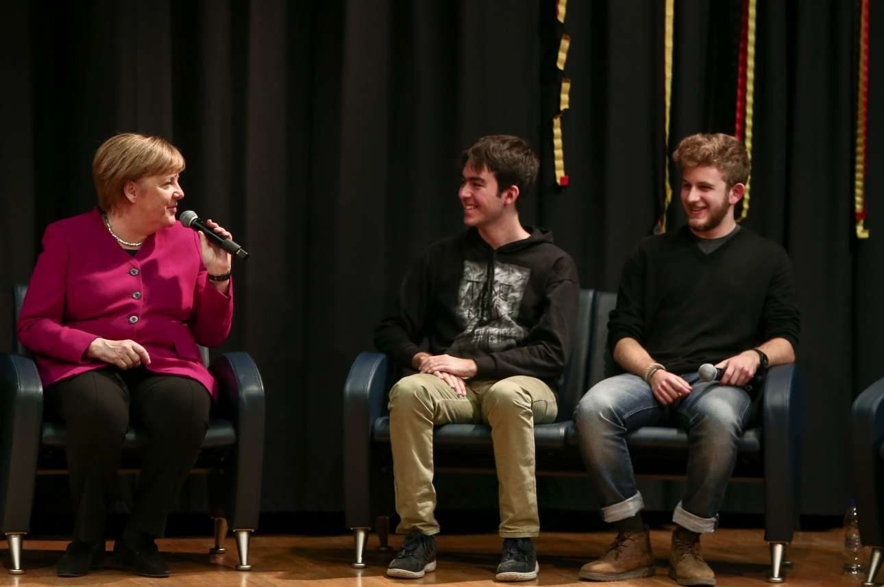 Το μέλλον της Ευρωπαϊκής Ενωσης και τις προκλήσεις που φέρνει, αλλά και το φαινόμενου του λαϊκισμού, είχε την ευκαιρία να συζητήσει η Ανγκελα Μέρκελ με τους μαθητές της Γερμανικής Σχολής στο Μαρούσι.