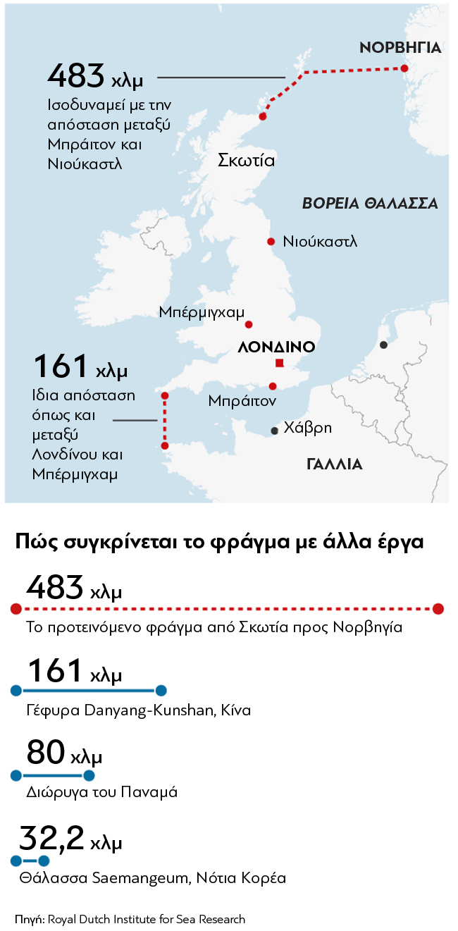 Τεχνικά, εξηγεί ότι είναι εφικτό, καθώς το βάθος στη Βόρεια Θάλασσα ανάμεσα σε Γαλλία και Αγγλία δεν ξεπερνά τα 100 μέτρα, ενώ ανάμεσα στη Σκωτία και τη Νορβηγία, κατά μέσο όρο, βρίσκεται στα 127 μέτρα και μόνο κοντά στις νορβηγικές ακτές φτάνει τα 320 μέτρα.