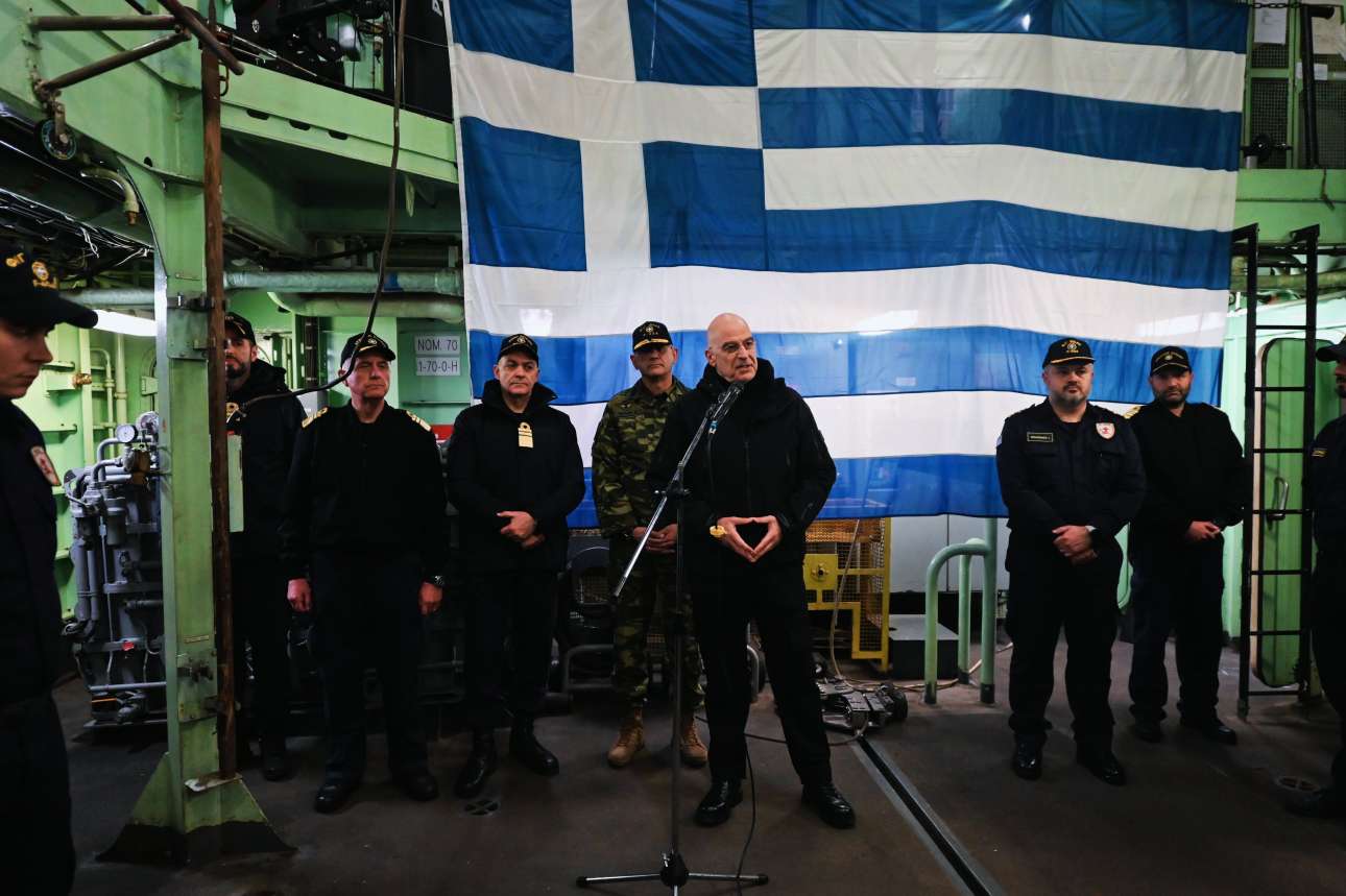 Ο κ. Δένδιας ξεναγήθηκε στη φρεγάτα, ενημερώθηκε για την αποστολή του πλοίου και συνομίλησε με μέλη του πληρώματος.