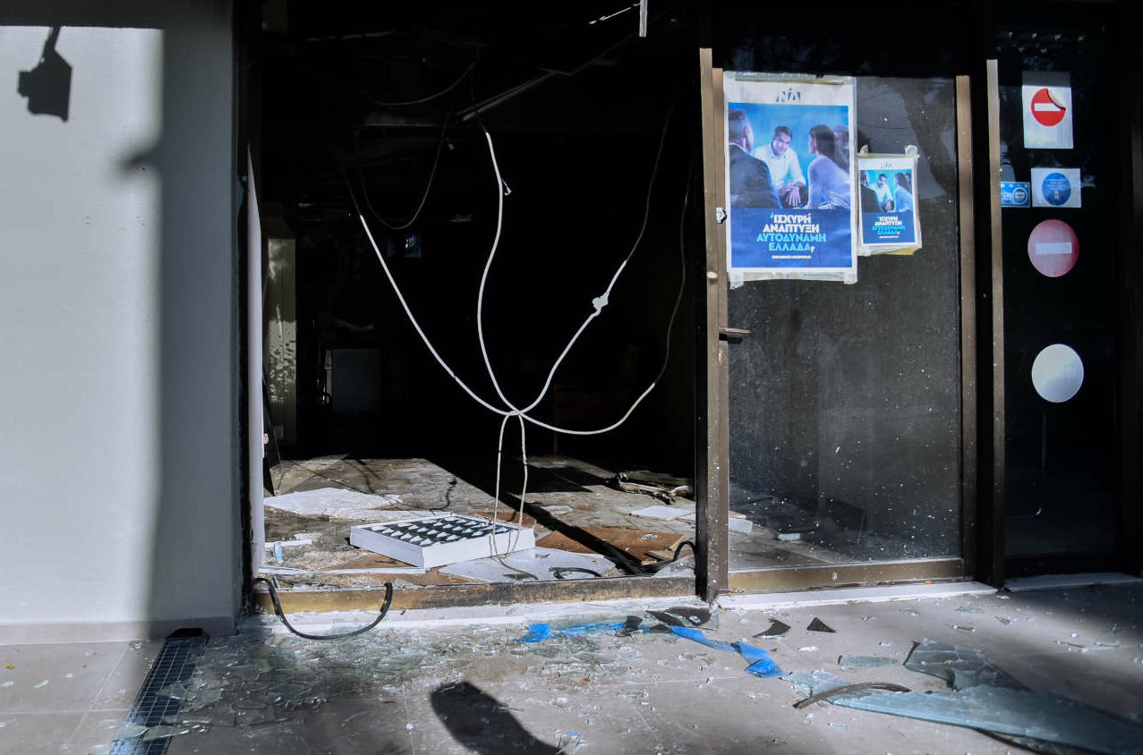 Η εικόνα των καταστροφών στα γραφεία της ΝΔ στην Πέυκη