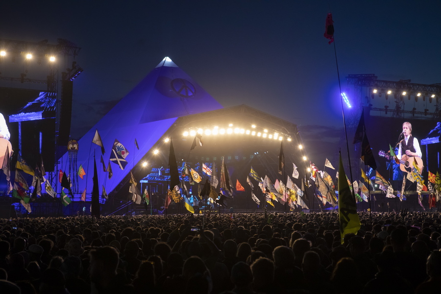Ο Πολ ΜακΚάρτνεϊ, πλαισιωμένος από τους εξαίρετους προσκεκλημένους του, Μπρους Σπρίνγκστιν και Ντέιβ Γκρολ, έδωσε μια επική, τρίωρη συναυλία το βράδυ του Σαββάτου στο Γκλάστονμπερι.