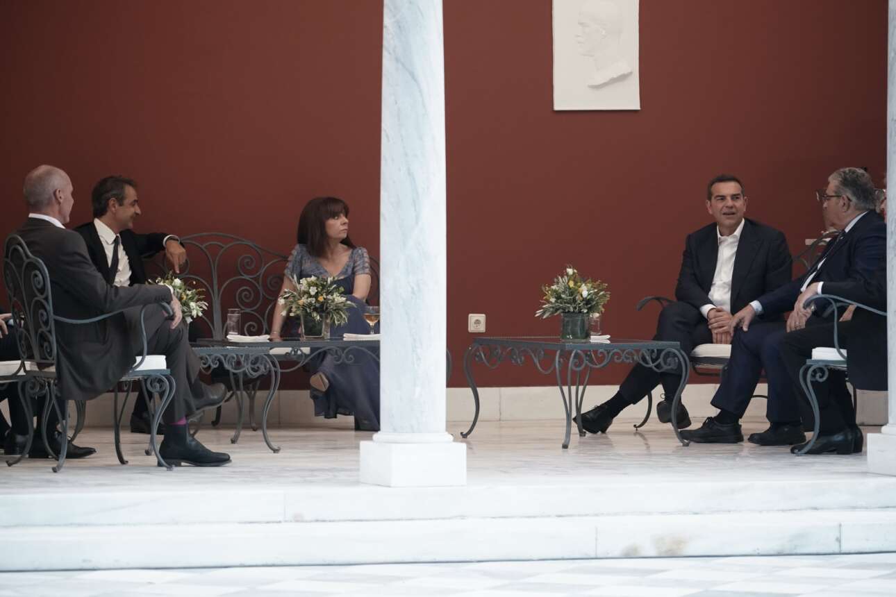 Τον πολιτικό τόνο της βραδιάς έδωσε αποκλειστικά ο Πρωθυπουργός, που έστειλε άπαντες διακοπές, άνετα, αποκλείοντας το ενδεχόμενο εξελίξεων, πόσο μάλλον άμεσης εκλογικής αναμέτρησης (ακόμη μια φορά, πρέπει να έχει βαρεθεί να το λέει). Ο Αλέξης Τσίπρας περιέγραφε την εμπειρία του με την Covid-19, διαβεβαιώνοντας ότι είναι αρνητικός. Ο Νίκος Ανδρουλάκης προανήγγειλε ταξίδι στο Μόντρεαλ του Καναδά, για επαφές με την Ομογένεια. Αυτός που δυσκολεύτηκε πολύ να αποχωρήσει από το Προεδρικό Μέγαρο, ήταν ο κ. Μητσοτάκης. Το μονοπάτι που διέσχιζε, είχε κλείσει από όσους προσπαθούσαν να του αποσπάσουν χειραψίες και σχόλια.