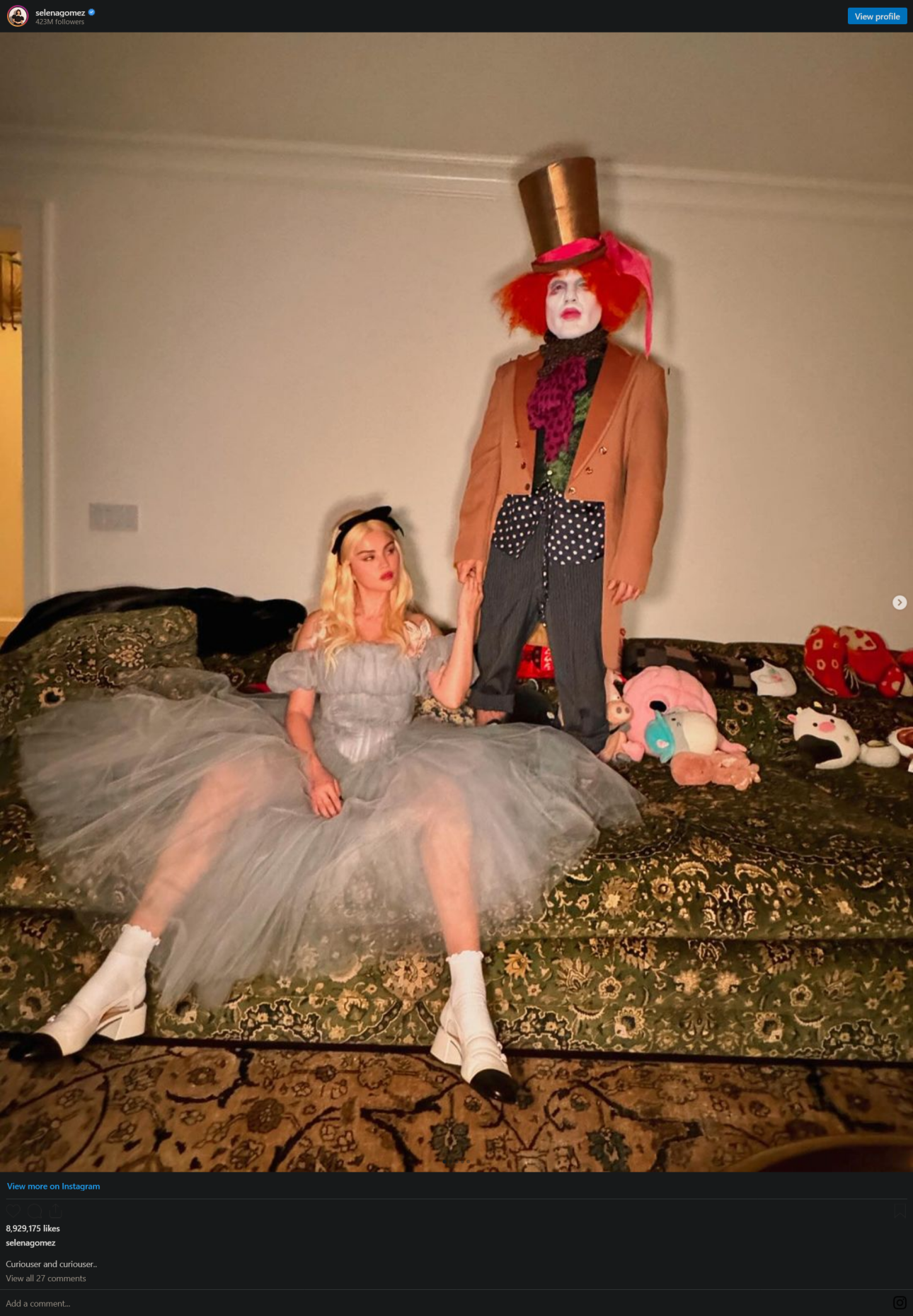 Τέλος, η τραγουδίστρια και ηθοποιός Σελίνα Γκόμεζ (την οποία απολαμβάνουμε στην κωμική σειρά δράσης «Only Murders in the Building» πλάι στους Στιβ Μάρτιν και Μάρτιν Σορτ) και ο σύντροφός της επέλεξαν κοστούμια εμπνευσμένα από χαρακτήρες του γνωστού παραμυθιού του Λούις Κάρολ «Η Αλίκη στη Χώρα των Θαυμάτων».