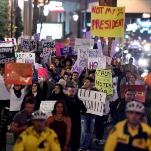 Κατά τον Τραμπ, όπως έσπευσε να πει σε ένα από τα πρώτα tweet μετά την εκλογική νίκη, οι διαδηλώσεις είναι υποκινούμενες και οι διαδηλωτές «επαγγελματίες».
