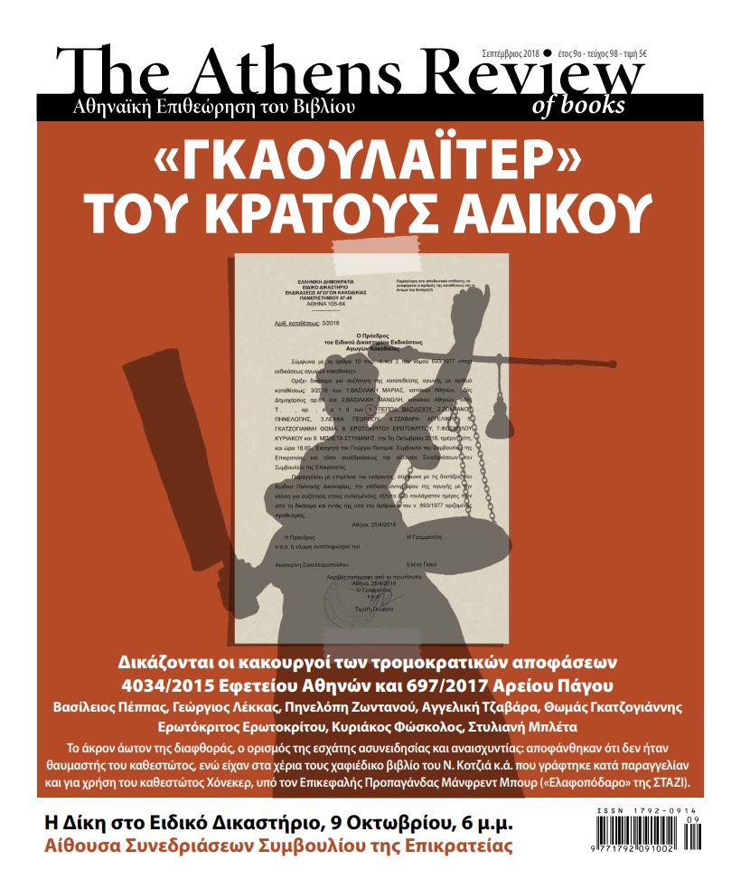 » Η επίθεση αυτή συνέβη αφού κυκλοφόρησε το τελευταίο τεύχος της Athens Review of Books, το αφιερωμένο στη δίκη στο Ειδικό Δικαστήριο των δραστών τής εις βάρος μας κακοδικίας (9 Οκτωβρίου, Αίθουσα Συνεδριάσεων του Συμβουλίου της Επικρατείας, 6 μ.μ.). Η δίκη αυτή δεν είναι μια οποιαδήποτε. Είναι η πρώτη φορά στην ιστορία του ελληνικού κράτους που δικάζεται ηγεσία του Αρείου Πάγου. Είναι η πρώτη φορά στην ιστορία της Ευρώπης και του Δυτικού κόσμου που δικάζεται ηγεσία ανωτάτου δικαστηρίου».