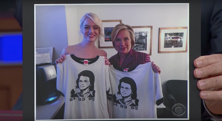 Είναι γνωστό ότι η πρωταγωνίστρια του «La la land» υποστήριξε την Χίλαρι Κλίντον στις εκλογές των ΗΠΑ. Ετσι, στην πορεία της συζήτησης με τον Στίβεν Κολμπέρ σχολίασε με τον δικό της τρόπο την νίκη του Ντόναλντ Τραμπ. Συγκεκριμένα, ο παρουσιαστής της εκπομπής σχολίασε ότι είχε και αυτός μία κρίση πανικού στις 8 Νοεμβρίου (ημέρα εκλογής του Ντόναλντ Τραμπ) για να πάρει την άμεση απάντηση της Εμα Στόουν που είπε: «Ακου, κι εγώ το ίδιο, κι εγώ το ίδιο!».