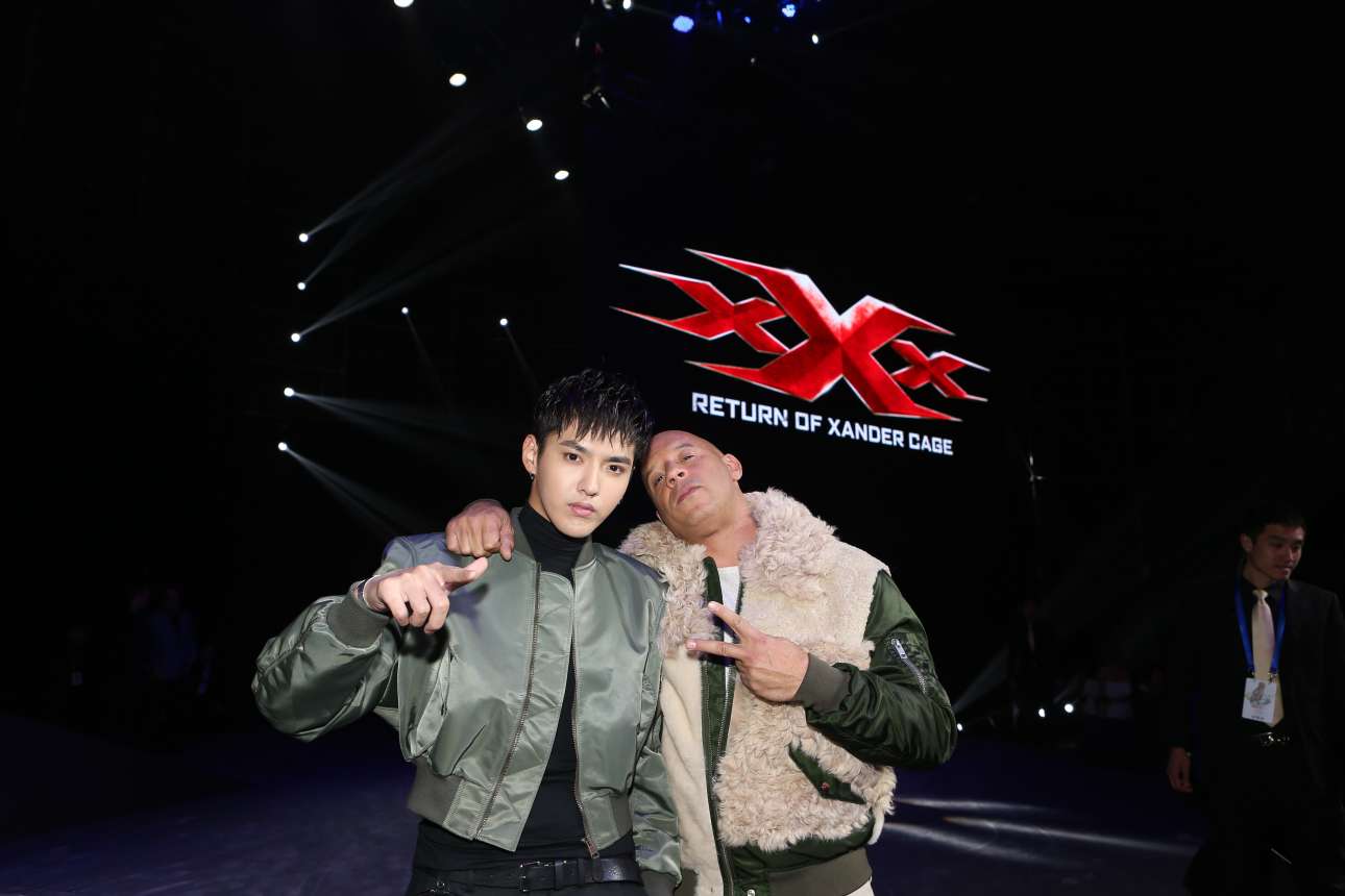 Ο Κιμ Γου με τον Βιν Ντίζελ κατά την παρουσίαση της ταινίας «xXx: Η επιστροφή του Ζάντερ Κέιτζ» στο Πεκίνο. Φωτογραφία: Getty Images