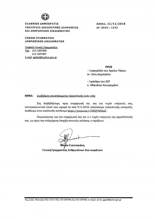 Στην Εισαγγελέα του Αρείου Πάγου και το Εθνικό Συμβούλιο Ραδιοτηλεόρασης εστάλη, κατόπιν παρέμβασης της γενικής γραμματέως Ανθρωπίνων Δικαιωμάτων, Μαρίας Γιαννακάκη (δείτε το σχετικό έγγραφο κάτω), το βίντεο με τη ρατσιστική επίθεση του Τάκη Τσουκαλά, από το βήμα της τηλεοπτικής εκπομπής του, κατά του Θανάση Αντετοκούνμπο.