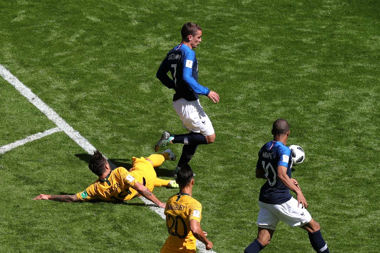 Ηταν η πρώτη χρήση του VAR (Video Assistant Referee) σε Παγκόσμιο Κύπελλο. O Αντουάν Γκριεζμάν ανατράπηκε μέσα στην περιοχή από τον Τζόσουα Ρίντσον της Αυστραλίας  σε μία δύσκολη φάση για τον διαιτητή ο οποίος έδωσε το πέναλτι αφού πρώτα είδε την φάση στο βίντεο.