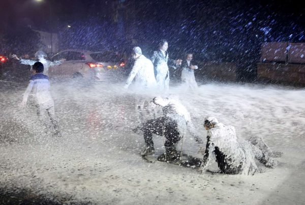 Οι φωτογραφίες από την τελευταία συγκέντρωση διαμαρτυρίας δείχνουν διαδηλωτές κυριολεκτικά λουσμένους στο πηχτό υγρό, έξω από το δικαστήριο, στη συνοικία Μέα Σεαρίμ της Ιερουσαλήμ. Οι, δε, δρόμοι μοιάζουν σαν χιονισμένοι λόγω της μεγάλης ποσότητας υγρού.
