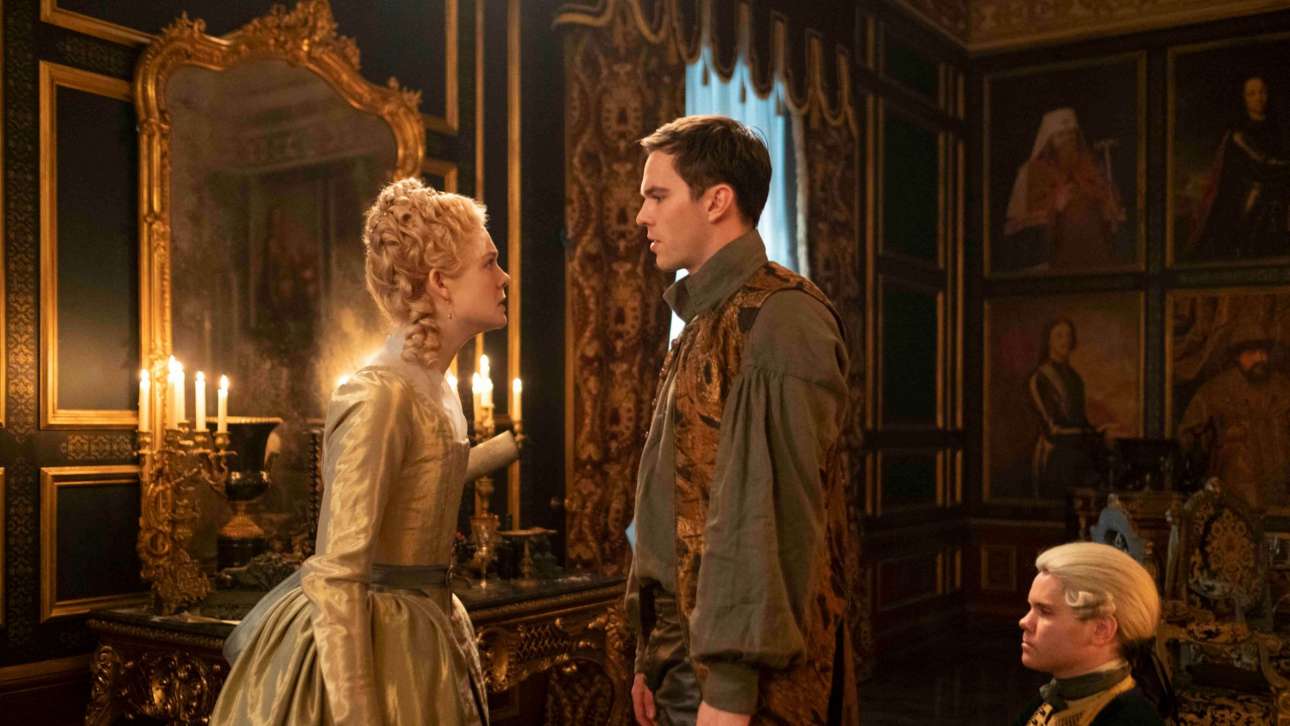 Η 19χρονη… αναχρονισμένη Αικατερίνη, λοιπόν, φανταζόταν πως στην Αυλή του Πέτρου (τον ενσαρκώνει ο Νίκολας Χουλτ των «X-Men» και του «Mad Max») θα έβρισκε τον έρωτα. Αντ’ αυτού, η πρώτη της νύχτα περνάει μέσα σε ενάμισι λεπτό «απρόσωπης» επαφής με τον Πέτρο, σε μια «τεχνική» προσπάθεια τεκνοποιΐας και δη την ώρα που εκείνος μιλάει παράλληλα με φίλους του στην Αυλή, για άσχετα θέματα.
