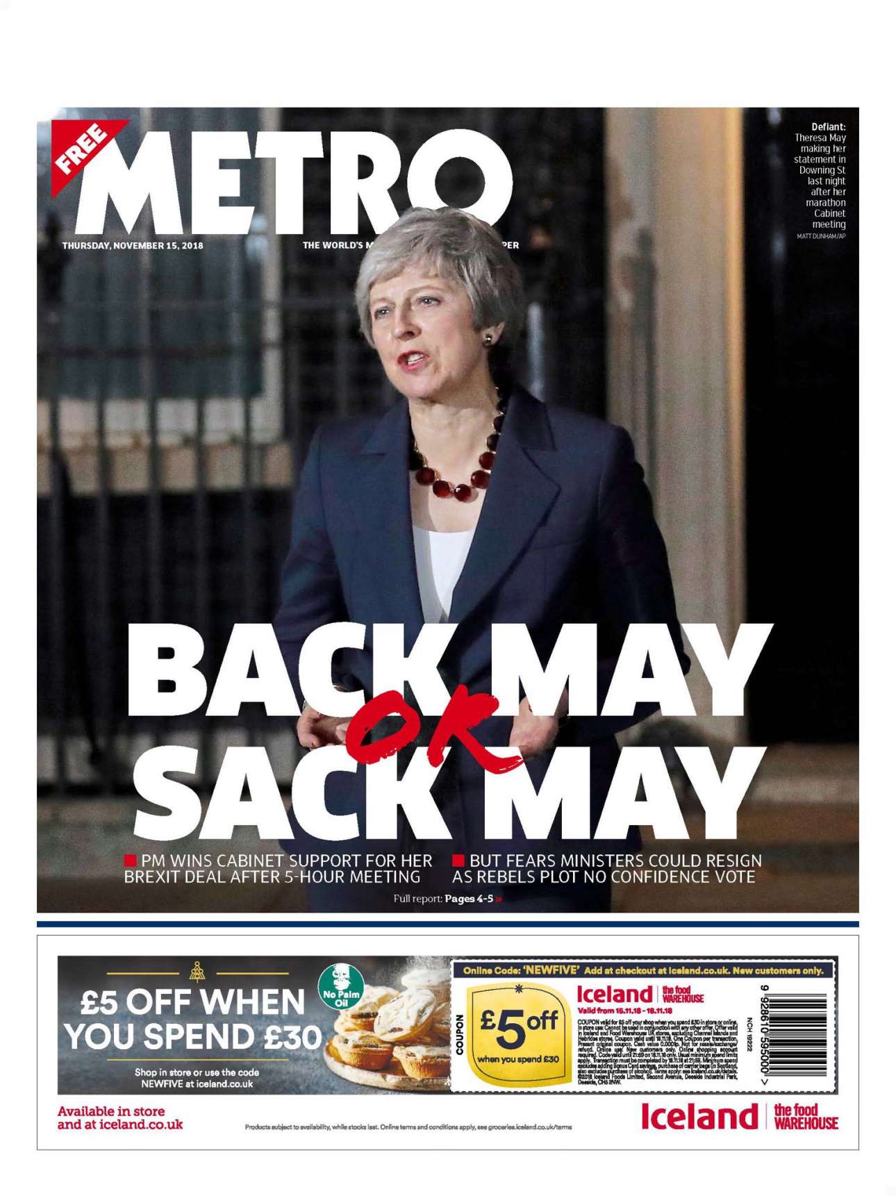 Δεν είναι όμως ο μόνος πονοκέφαλος. Πληροφορίες θέλουν στελέχη των Τόρις να ετοιμάζουν και πρόταση δυσπιστίας προς το πρόσωπο της πρωθυπουργού. Το ελάχιστο όριο είναι 48 υπογραφές και λέγεται ότι δεν απέχουν από το να το φτάσουν.
