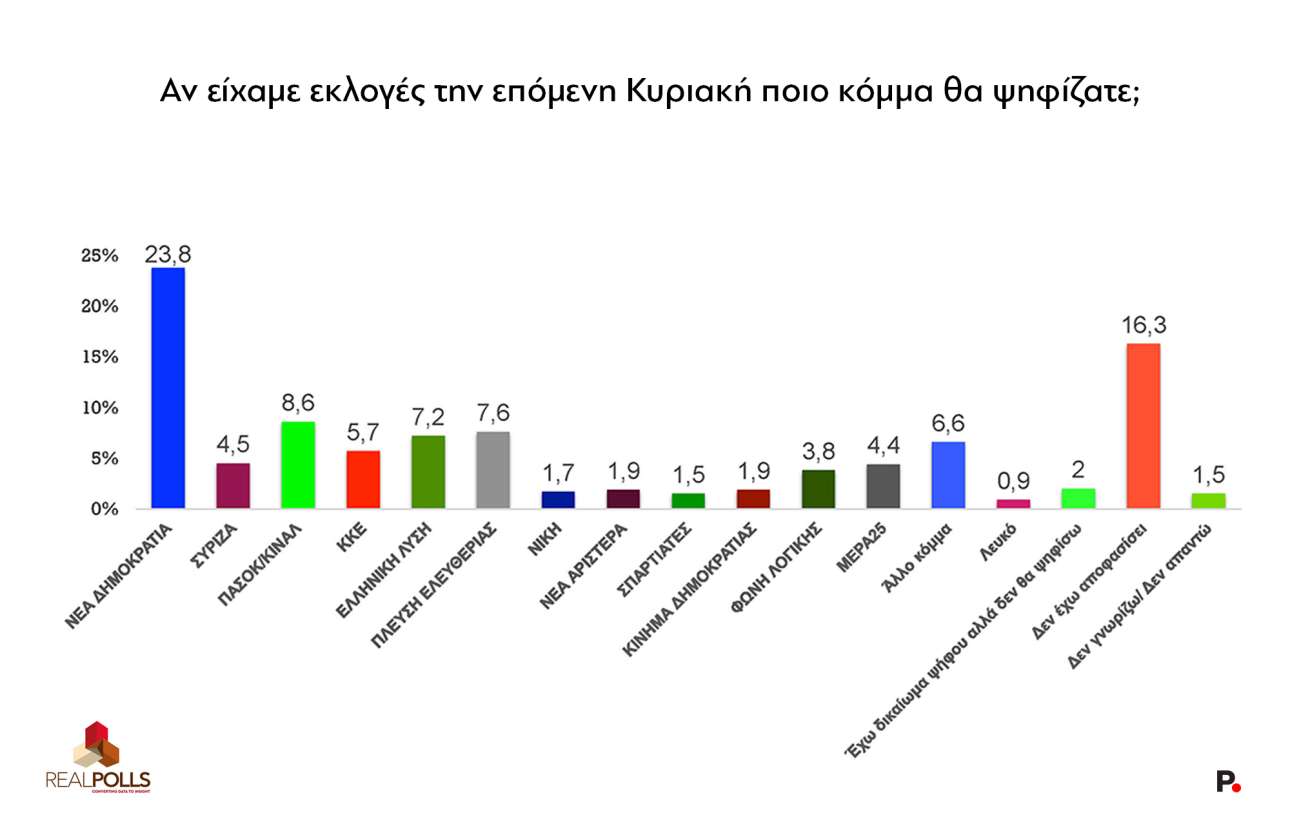 Τα ευρήματα της έρευνας της RealPolls για το Protagon, της δεύτερης της νέας κοινοβουλευτικής χρονιάς –διεξήχθη το τετραήμερο 17-20 Οκτωβρίου, σε δείγμα 1.724 ατόμων–, δίνουν απαντήσεις. Περιγράφουν μια πολιτική συνθήκη που συνεχίζει να αποτελεί πηγή προβληματισμού για το Μέγαρο Μαξίμου –η ΝΔ εξακολουθεί να μη βελτιώνει τη θέση της, αντιθέτως, έστω οριακά, υποχωρεί στην πρόβλεψη εκλογικού αποτελέσματος σε σύγκριση με την προηγούμενη μέτρηση– αλλά και για την αξιωματική αντιπολίτευση –το ΠΑΣΟΚ-Κίνημα Αλλαγής βρίσκεται και πάλι να καρκινοβατεί αναμετρούμενο με την Πλεύση Ελευθερίας–, ενώ και ο κ. Τσίπρας δείχνει να έχει σχετικά χαμηλό ταβάνι.