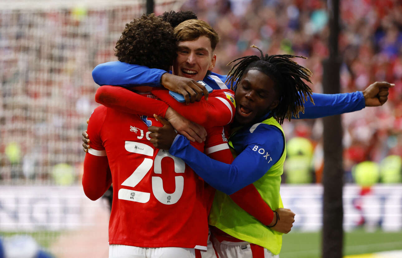 Οι παίκτες της Νότιγχαμ Φόρεστ πανηγυρίζουν την νίκη που φέρνει την ιστορική ομάδα στα σαλόνια της Πρέμιερ Λιγκ | Reuters