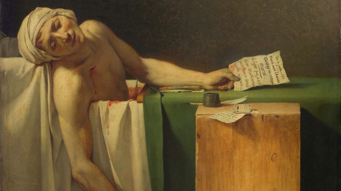 Η έκθεση περιλαμβάνει και τον περίφημο πίνακα του Ζακ-Λουί Νταβίντ με θέμα τον θάνατο του Ζαν-Πολ Μαρά, του επαναστάτη ηγέτη που δολοφονήθηκε από τη Σαρλότ Κόρντεϊ – η οποία υποστήριζε την αλλαγή του καθεστώτος, μέχρι που παρατήρησε τον φανατισμό να κυριαρχεί στους κόλπους των επαναστατών.