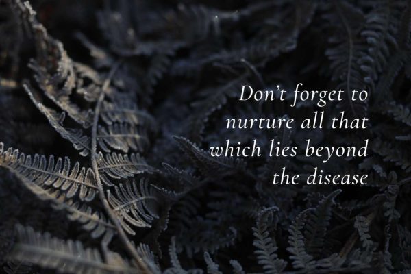 Την εικόνα πλαισιώνει το μότο: «Μην ξεχνάτε να φροντίζετε όλα όσα βρίσκονται πέρα από την ασθένεια».