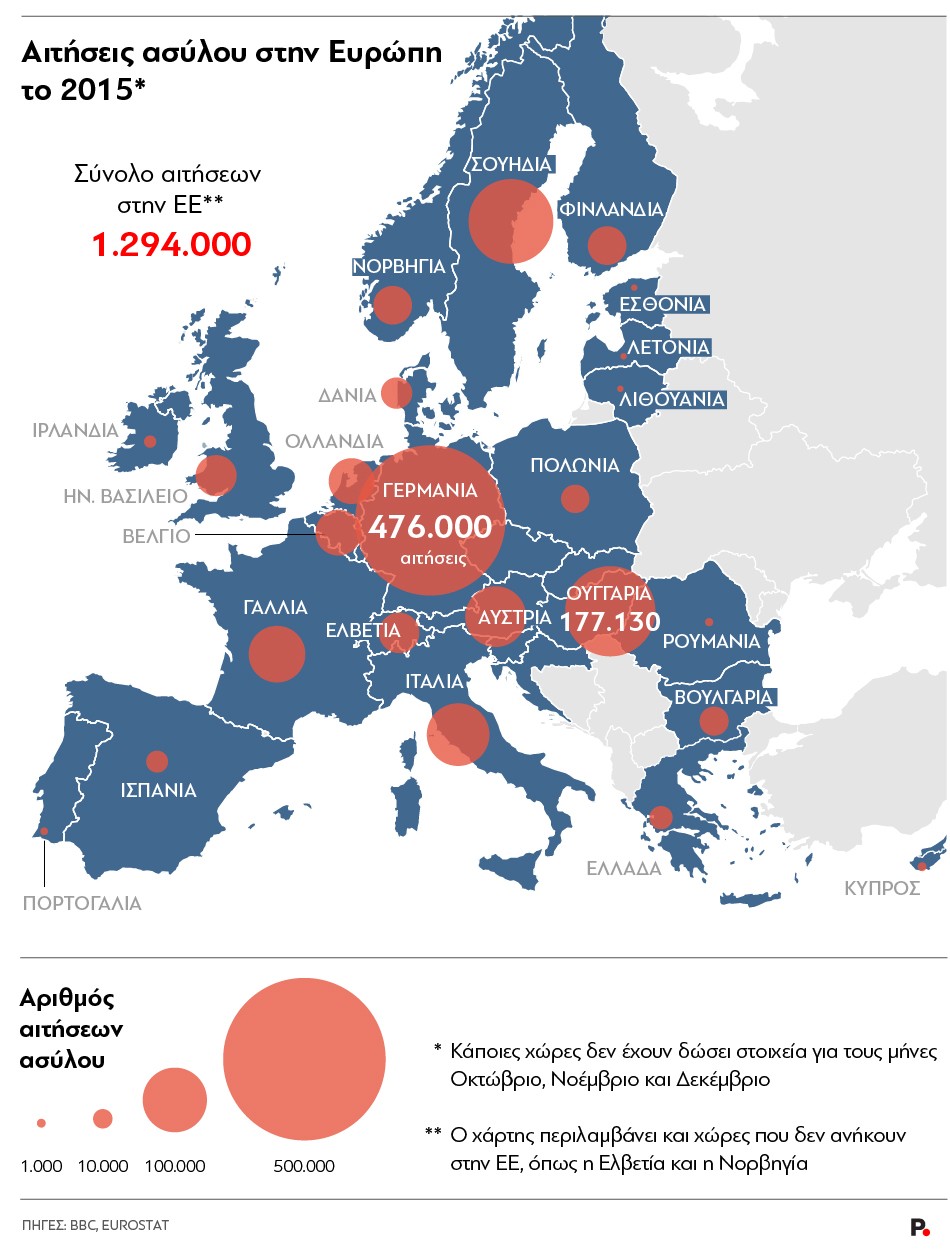 Μόνο το 2015 η Γερμανία δέχτηκε 476.000 αιτήσεις ασύλου