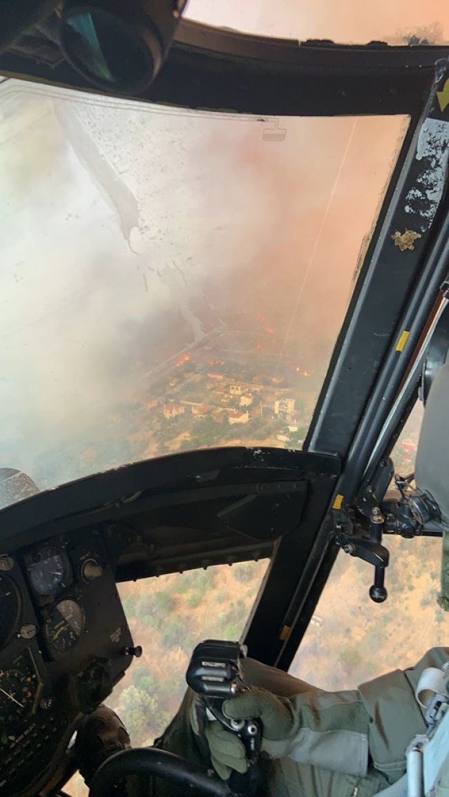 Συγκεκριμένα, δύο ελικόπτερα Σινούκ CH-47 πραγματοποίησαν δεκάδες ρίψεις νερού την Τρίτη και την Τετάρτη με τις φωτογραφίες που ελήφθησαν από τα μέλη των πληρωμάτων να δείχνουν το μέγεθος και την ένταση της φωτιάς που έκανε στάχτη 25.000 στρέμματα δάσους Natura.