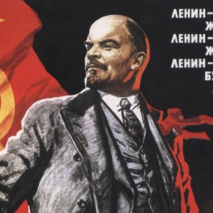 ( στον τοίχο γράφει: «Το έργο του Λένιν ζει και νικά» )
