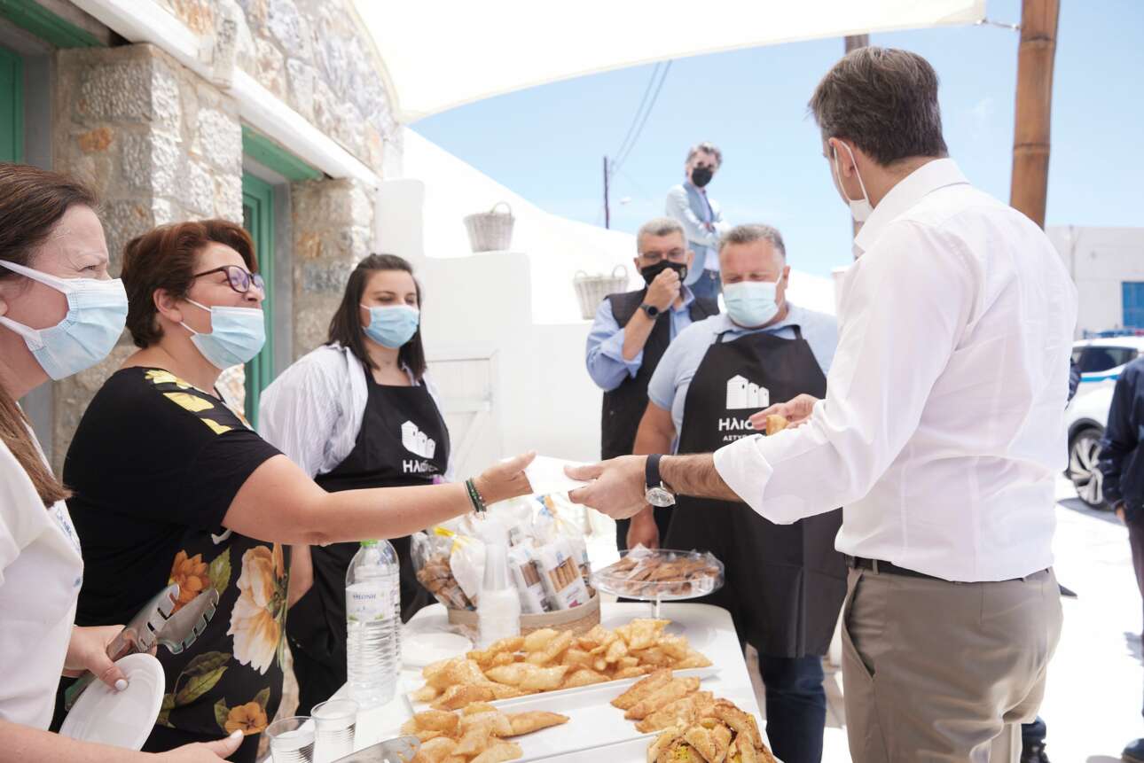 Πρώτος σταθμός του Κυριάκου Μητσοτάκη, ο παραδοσιακός φούρνος «Ηλιάνα», της Αστυπάλαιας, που φημίζεται για τα αρτοποιήματά του και έχει μετατραπεί σε ένα σύγχρονο εργαστήριο παραδοσιακών προϊόντων τα οποία εξάγει στην Ευρώπη και την Αμερική.