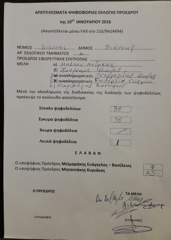 19:41 Πρώτα ανεπίσημα αποτελέσματα από ορισμένα εκλογικά τμήματα της περιφέρειας που έδωσε στη δημοσιότητα η πλευρά του Βαγγέλη Μεϊμαράκη: