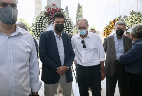 Παρευρέθησαν, μεταξύ άλλων, ο τ. Πρόεδρος της Δημοκρατίας Προκόπης Παυλόπουλος, ο υπουργός Προστασίας του Πολίτη Τάκης Θεοδωρικάκος, ο αντιπρόεδρος της Βουλής Δημήτρης Βίτσας, ο τ. πρόεδρος του Κοινοβουλίου Νίκος Βούτσης κ.α., ενώ επικήδειους εκφώνησαν ο πρόεδρος του ΣΥΡΙΖΑ Αλέξης Τσίπρας και ο υφυπουργός Ψηφιακής Διακυβέρνησης Θοδωρής Λιβάνιος.