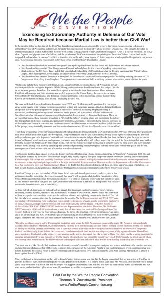 Είναι χαρακτηριστικό του φανατισμού του στρατηγού ότι δεν έλαβε υπ’ όψιν του καν τις ρεπουμπλικανικές παραδοχές της ήττας έπειτα από τους ελέγχους των ψήφων στις διάφορες Πολιτείες. Εψαξε όμως βαθιά στην αμερικανική Ιστορία και ανέσυρε τον Αβραάμ Λίνκολν, πρόεδρο την εποχή του πραγματικού εμφυλίου πολέμου της Αμερικής, ως παράδειγμα για τη δικαιολόγηση της συνταγματικής εκτροπής. (Οι ανιστορικοί παραλληλισμοί είναι χαρακτηριστικό της Ακροδεξιάς, και όχι μόνο στις ΗΠΑ.)