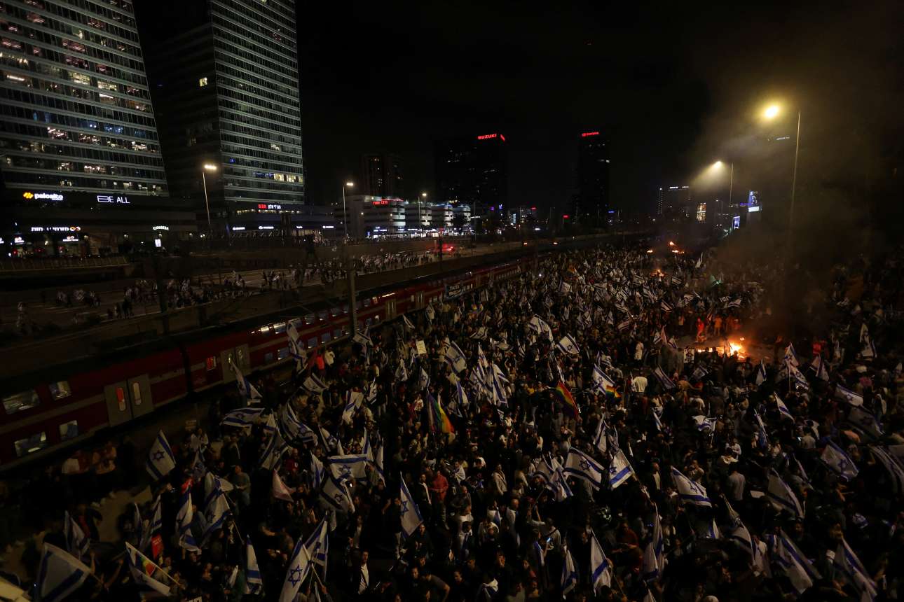 Μεγάλες διαδηλώσεις είχαν γίνει και το βράδυ του Σαββάτου, με τουλάχιστον 200.000 διαδηλωτές να διαμαρτύρονται στο Τελ Αβίβ για 12η συνεχή εβδομάδα και χιλιάδες ακόμα σε άλλες πόλεις.
