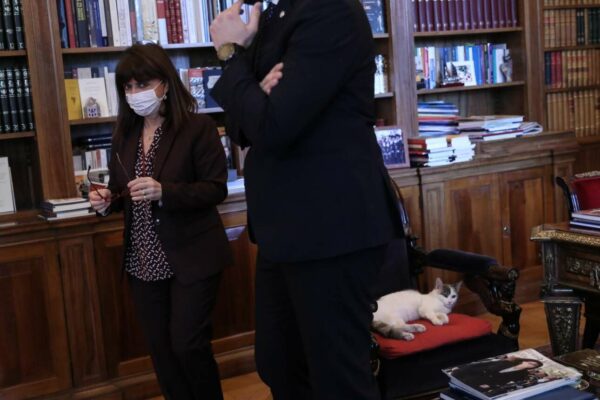 Ομως την Τρίτη, στην επίσκεψη του υπουργού Αμυνας Νίκου Παναγιωτόπουλου στην Πρόεδρο, η εμφάνιση της προεδρικής γάτας ήταν εμφατική.