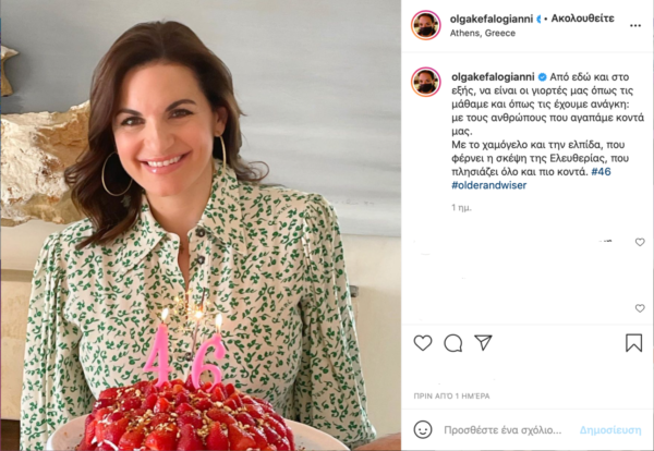 Μέσα σε όλα η Ολγα Κεφαλογιάννη, βουλευτής Α’ Αθηνών της ΝΔ, είχε γενέθλια. Και τα γιόρτασε με μια λιμπιστερή τούρτα με φράουλες και δύο κεράκια αριθμούς, δηλώνοντας —στο Instagram, διότι τι σόι γενέθλια θα είναι αν δεν κάνεις την ανάλογη ανάρτηση στα social media— «older and wiser», μεγαλύτερη και σοφότερη.