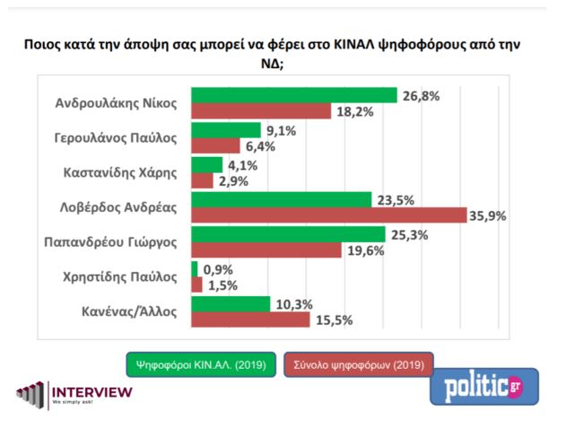 Ως προς το επίδικο, ποιος μπορεί να πάει το ΚΙΝΑΛ πάνω από την εκλογική του επίδοση του 2019, πάνω δηλαδή από το 8,10% οι απαντήσεις είναι αυτές: