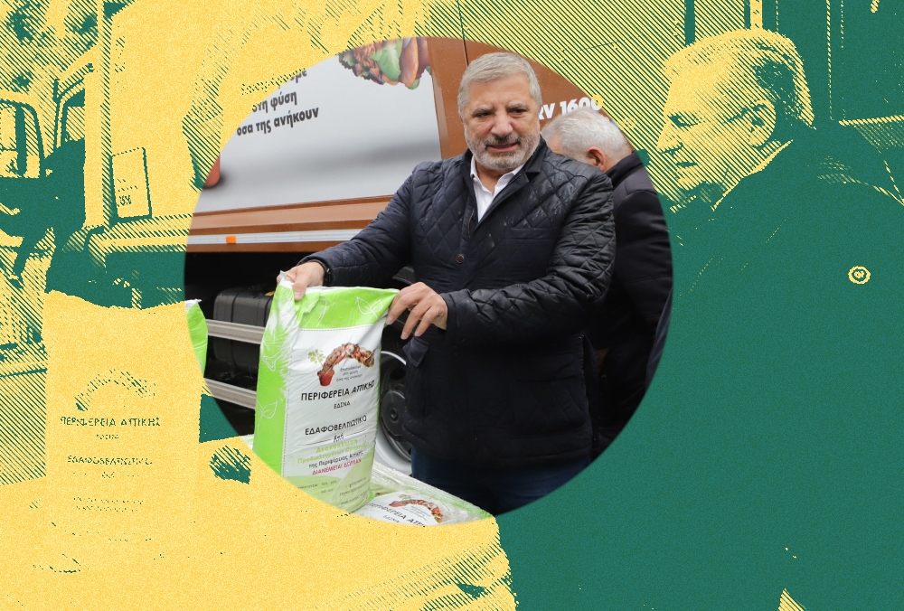 Αιτία ήταν η γραφιστική «έμπνευση» για τον σάκο με το εδαφοβελτιωτικό, το οποίο παρέδωσε ο κ. Πατούλης στον δήμαρχο Ιλίου Νίκο Ζανέτο. Μια εικόνα κομψοτέχνημα μεν –αν συνδυαστεί με το μήνυμα «επιστρέφουμε στη φύση όσα της ανήκουν»–, αλλά κατά κάποιους, είχε κάτι το φροϋδικό, αν όχι το πολύ kinky.