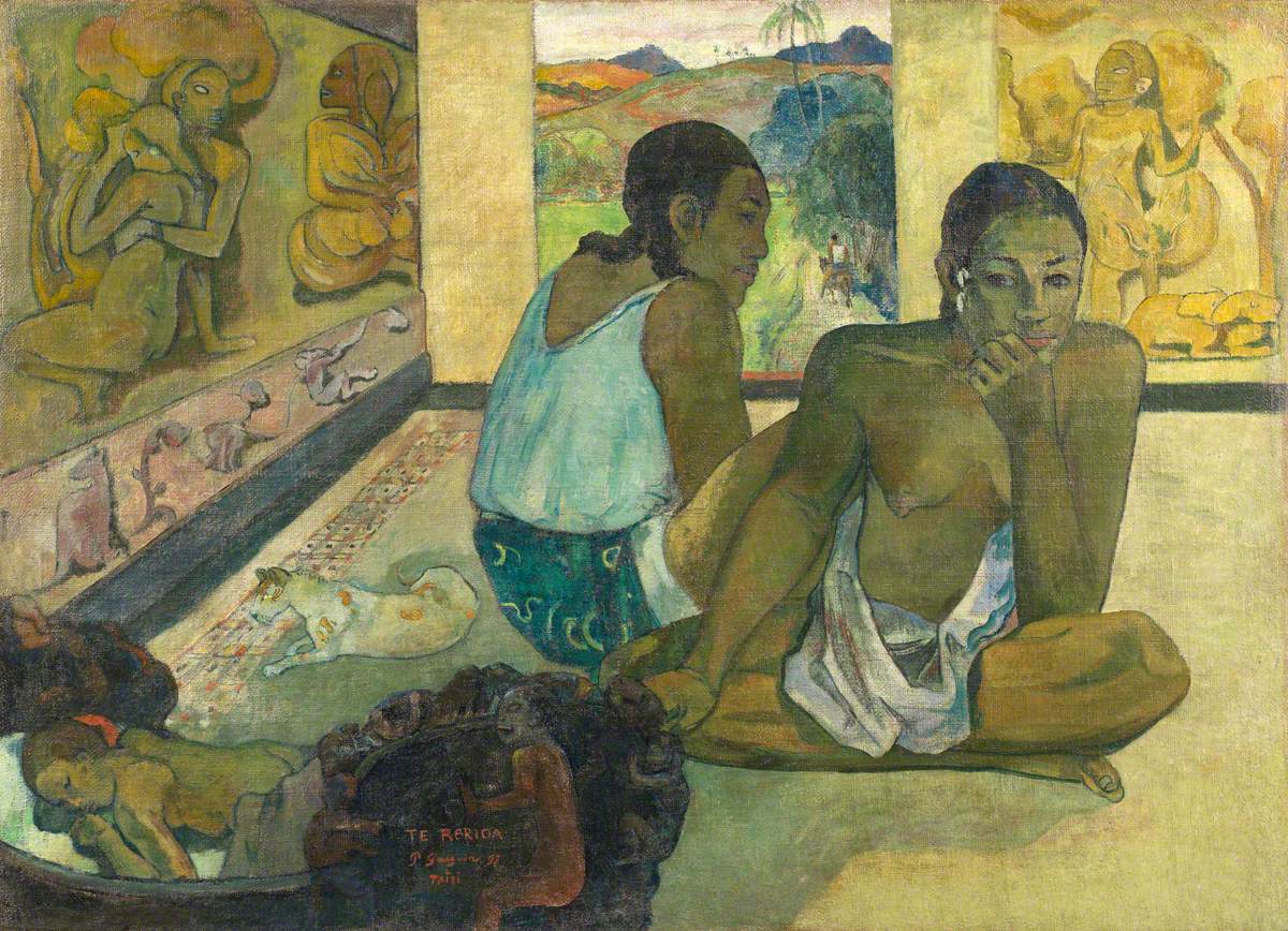 Ο πίνακας με τίτλο «Η Τεχαμάνα είχε πολλούς γονείς» (1893) απεικονίζει μία από τις ανήλικες ερωμένες του Γκογκέν να κρατά μία βεντάλια.