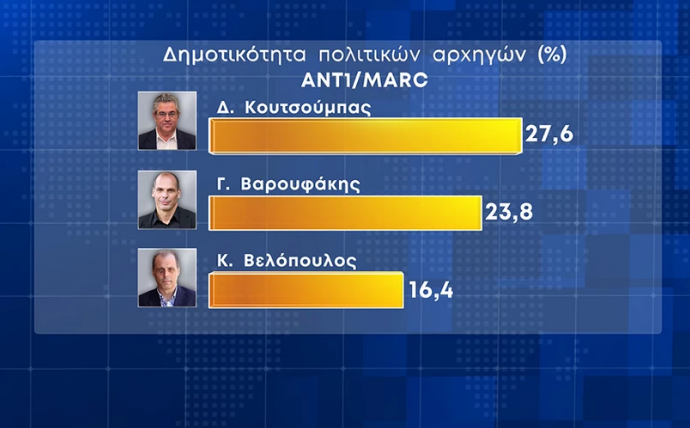 Ιδιο ποσοστό (48,6% για την ακρίβεια) συγκεντρώνει ο κ. Μητσοτάκης και στη δημοτικότητα των πολιτικών αρχηγών. Ακολούθησαν ο Νίκος Ανδρουλάκης με 35,8%, ο Αλέξης Τσίπρας με 35,3%, ο Δημήτρης Κουτσούμπας με 27,6%, ο Γιάννης Βαρουφάκης με 23,8% και ο Κυριάκος Βελόπουλος με 16,4%.