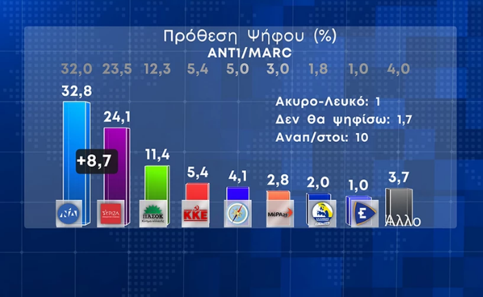 Και νέες δημοσκοπήσεις: Εως και 8,7 μονάδες η διαφορά ΝΔ – ΣΥΡΙΖΑ