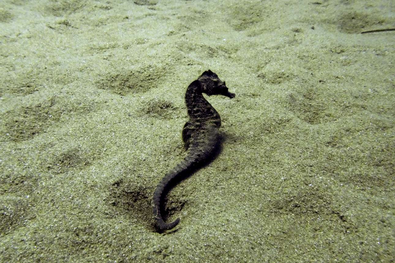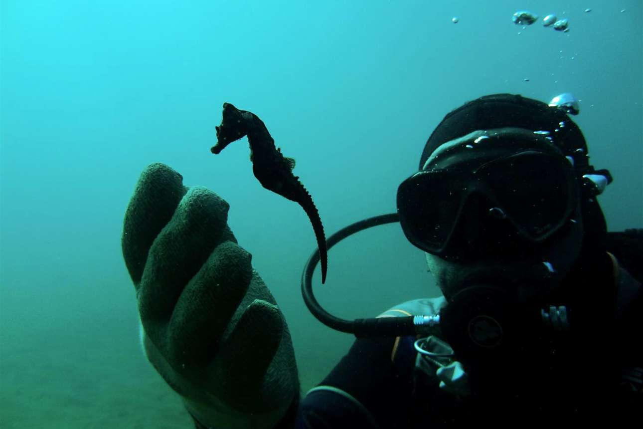 Κι όπως σχολιάζει με χιούμορ ο δύτης, «οι ιππόκαμποι είναι πολύ ντροπαλοί και συνέχεια γυρίζουν την πλάτη στην κάμερα!».