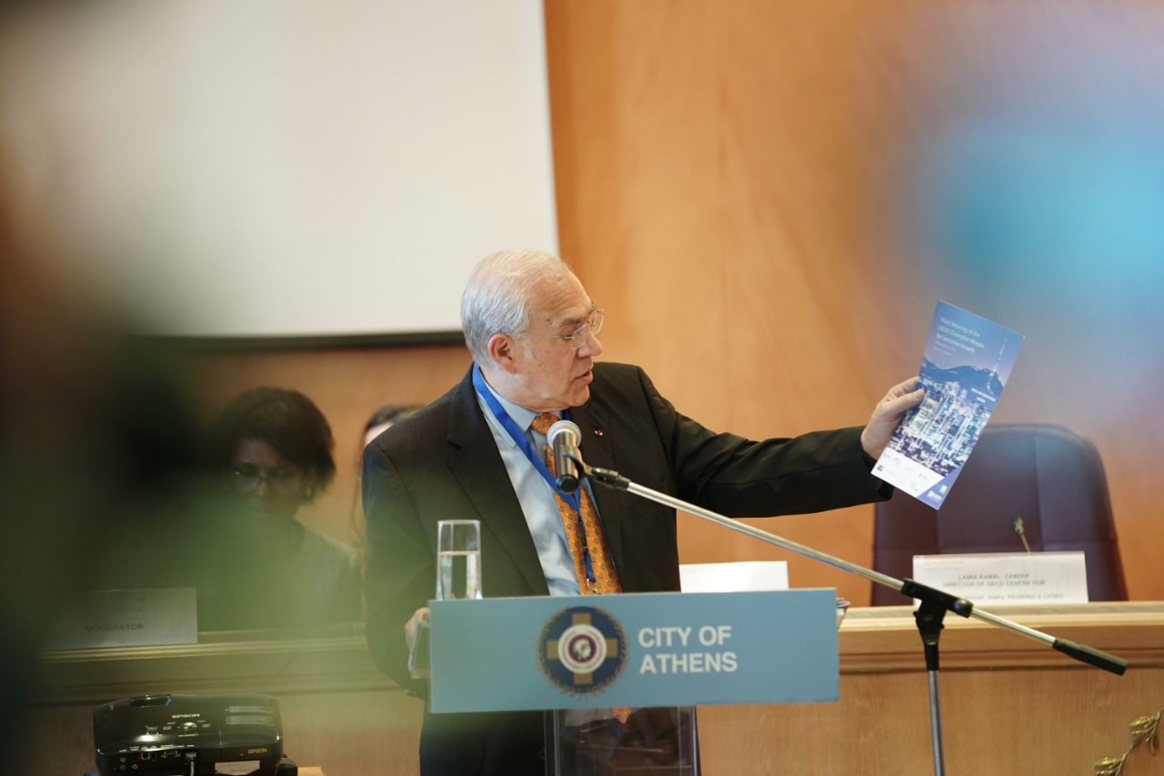 O δήμαρχος Αθηναίων Γιώργος Καμίνης και ο κ. Γκουρία παρουσίασαν τον «Οδικό Χάρτη της Αθήνας – Ανάπτυξη για Όλους», που περιλαμβάνει την κοινή δέσμευση των πόλεων να αντιμετωπίσουν συνεργαζόμενες τις αυξανόμενες ανισότητες, τόσο στο επίπεδο της πόλης τους όσο και σε παγκόσμιο επίπεδο.