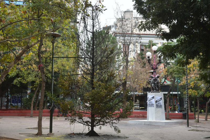 Κάρβουνο το χριστουγεννιάτικο δέντρο στα Εξάρχεια – Μπακογιάννης: θα το ξαναστήσω
