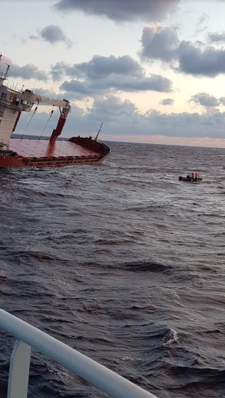 Σύμφωνα με το Λιμενικό στο πλοίο επέβαιναν 14 μέλη πληρώματος, ενώ παρουσίασε κλίση, λόγω μετατόπισης φορτίου.