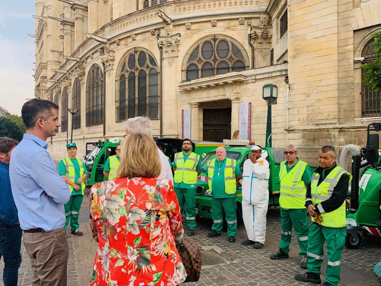 Κατά την επίσκεψή του, τον συνόδευαν στελέχη της υπηρεσίας καθαριότητας της γαλλικής πρωτεύουσας, οι οποίοι τον ενημέρωναν με κάθε λεπτομέρεια.