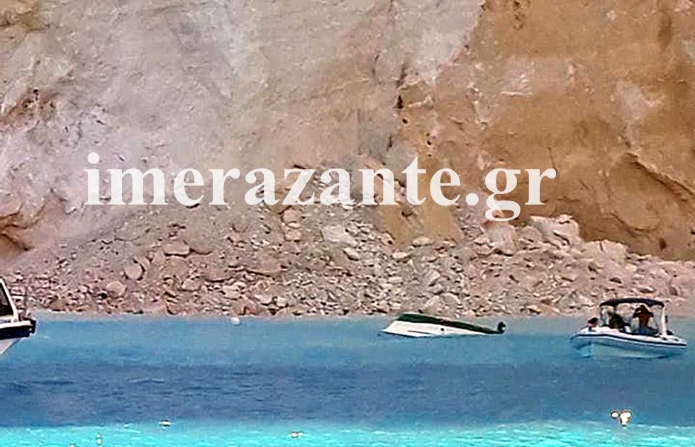Πανικός προκλήθηκε στο «Ναυάγιο» της Ζακύνθου, μία από τις διασημότερες παραλίες της Ελλάδας, όταν λίγο μετά τις 11.00 κατέρρευσαν βράχια στην ακτή.