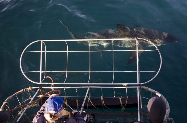 Μία θαλάσσια βόλτα μέσα σε ατσάλινο κλουβί, στο μέρος όπου βρίσκονται οι καρχαρίες, είναι δημοφιλής τουριστική ατραξιόν για τους επισκέπτες του Κέιπ Τάουν.