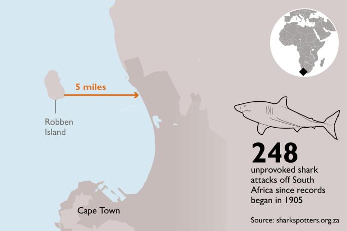 Οχι όμως, αν πρόκειται για την απόσταση από τη νήσο Ρόμπεν της Νότιας Αφρικής μέχρι την ακτή του Κέιπ Τάουν, «σπίτι» εκατοντάδων μεγάλων λευκών καρχαριών.