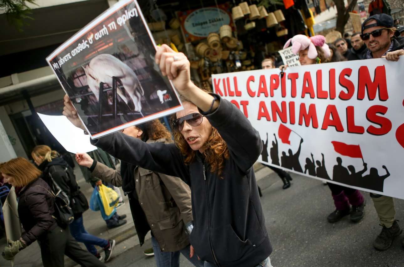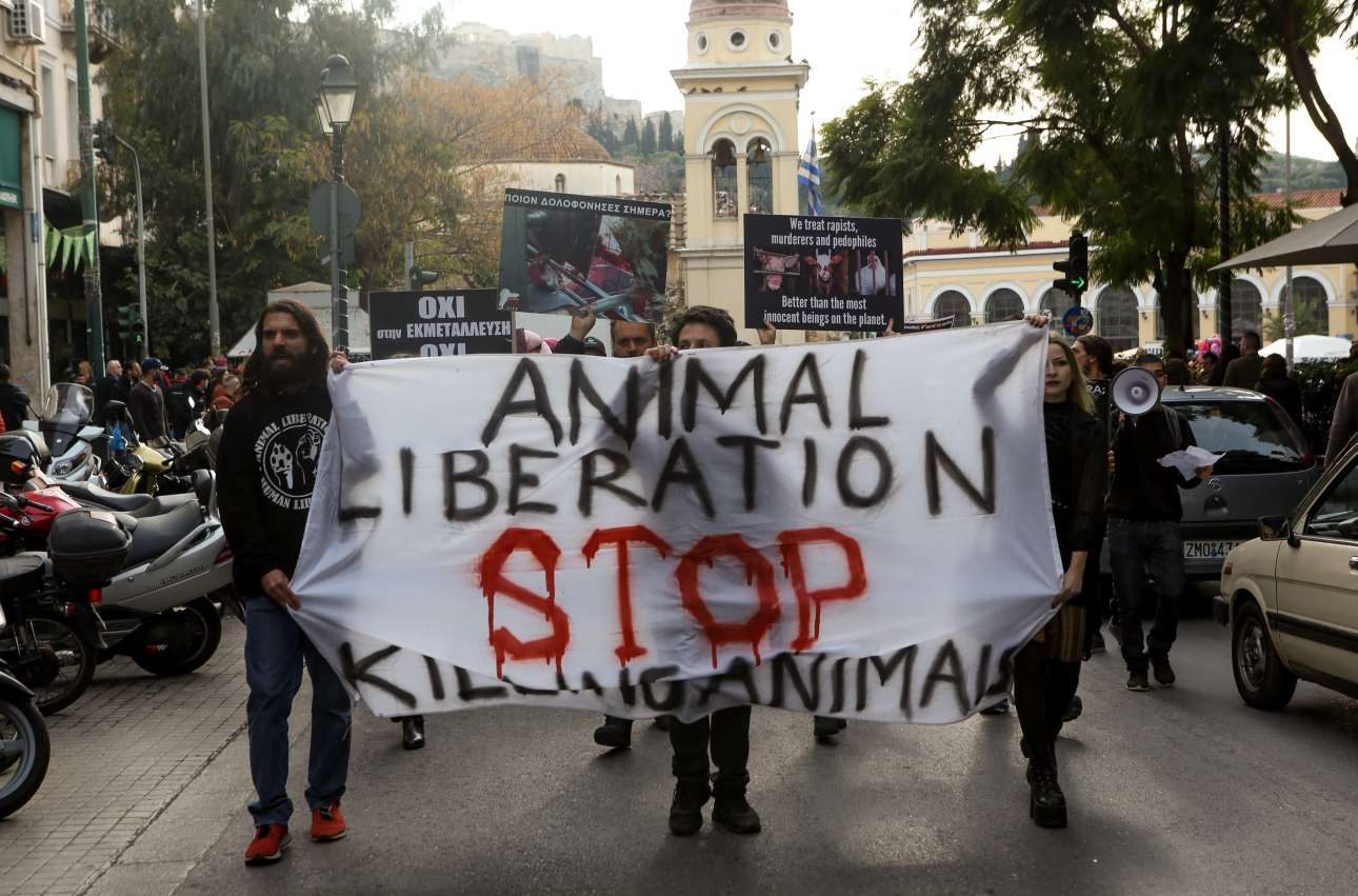 Συγκέντρωση διαμαρτυρίας στο Μοναστηράκι και έπειτα πορεία προς τη Βαρβάκειο Αγορά πραγματοποίησαν το Σάββατο μέλη vegan ακτιβιστικών ομάδων.