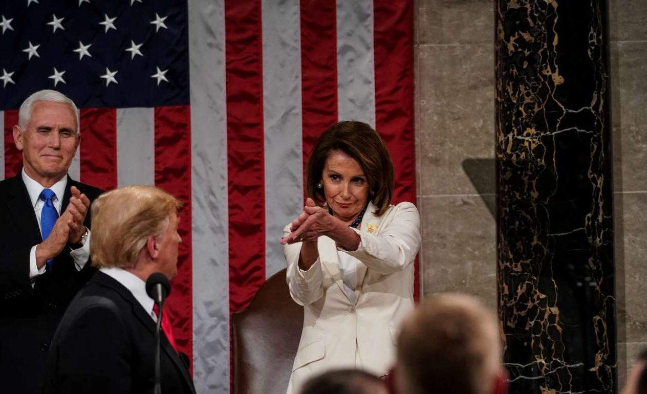 Τα βλέμματα όλων ήταν στραμμένα στη Νάνσι Πελόζι, πρόεδρο της Βουλής, λόγω της έντονης αντιπαράθεσής της με τον Τραμπ για το «κλείσιμο» της ομοσπονδιακής κυβέρνησης και την διεξαγωγή της ομιλίας του. Η Πελόζι, που καθόταν πίσω από τον αμερικανό πρόεδρο, δεν έκρυψε τη δυσφορία της σε αρκετά σημεία της ομιλίας.