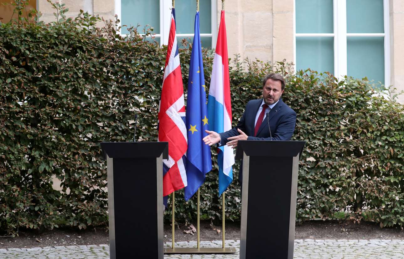 Επειτα από ένα έντονο δίωρο γεύμα στο Λουξεμβούργο με τον πρόεδρο της Ευρωπαϊκής Επιτροπής Ζαν Κλοντ Γιούνκερ, ο βρετανός πρωθυπουργός Μπόρις Τζόνσον συνάντησε τον πρωθυπουργό του Λουξεμβούργου Ξαβιέ Μπετέλ και δέχτηκε έντονα γιουχαΐσματα από διαδηλωτές που του εξέφρασαν τη δυσαρέσκειά τους για τους χειρισμούς του στο θέμα του Brexit.
