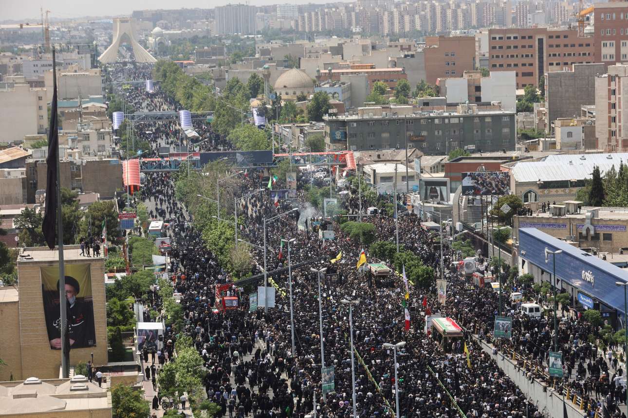 Εκατοντάδες χιλιάδες Ιρανοί συγκεντρώθηκαν από το πρωί της Τετάρτης στο κέντρο της Τεχεράνης για να αποτίσουν τελευταίο φόρο τιμής στον Εμπραχίμ Ραϊσί, ο οποίος σκοτώθηκε την Κυριακή σε δυστύχημα με ελικόπτερο.