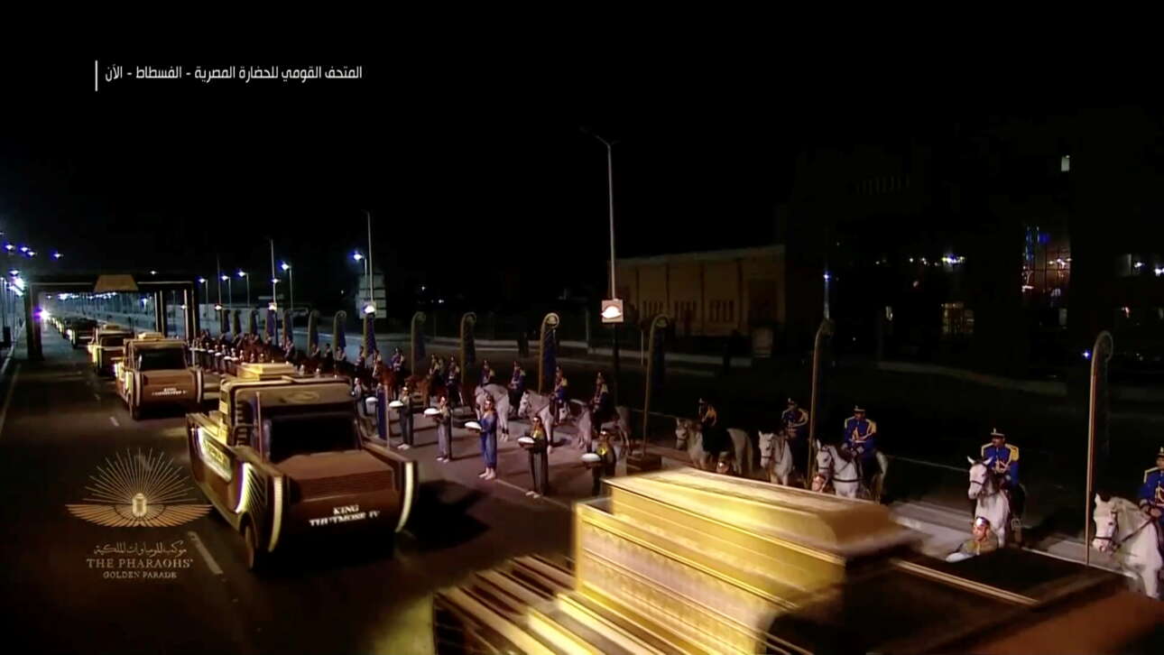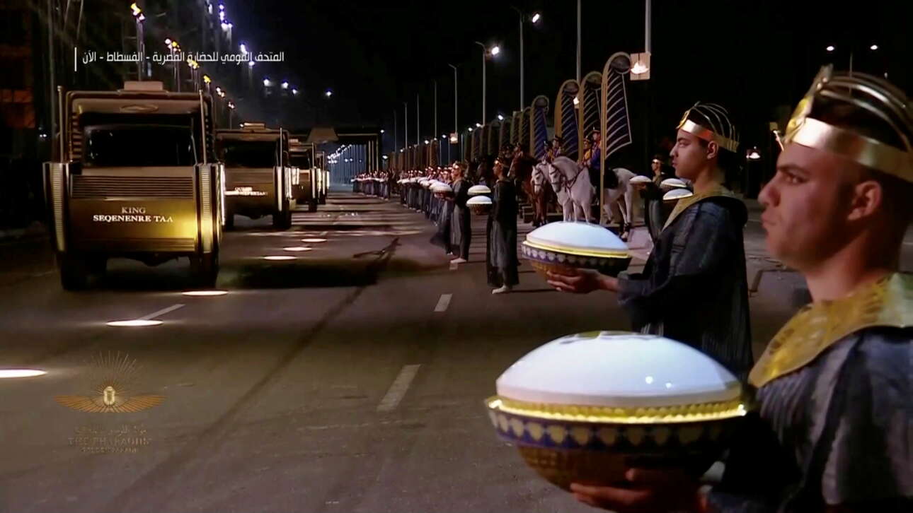 Είκοσι δύο άρματα, μετέφεραν τις μούμιες βασιλιάδων και βασιλισσών της αρχαίας Αιγύπτου, παρελαύνοντας το βράδυ του Σαββάτου στους δρόμους του Καΐρου, σε ένα φαραωνικό θέαμα.